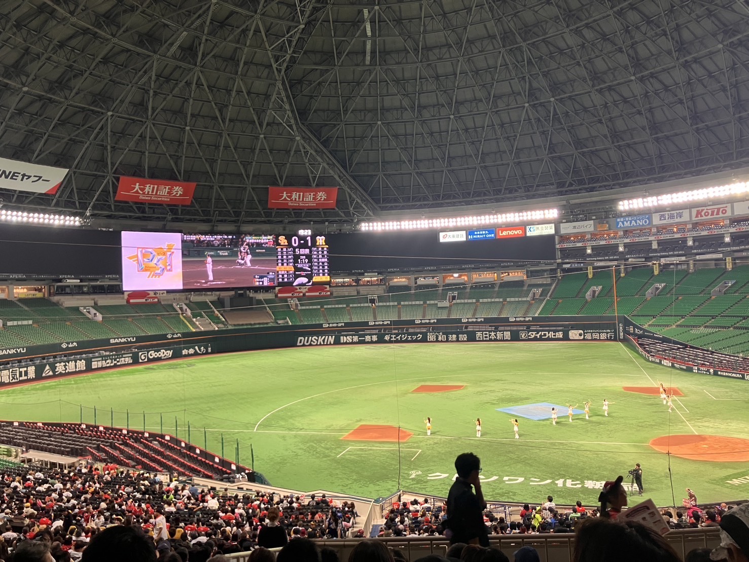 人数は7,000人だったのですが、柳田選手のホームラン後は目の前で試合をしているかのような盛り上がりでした。