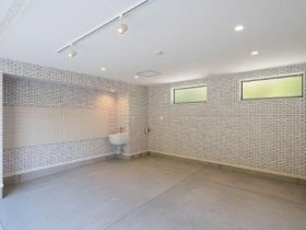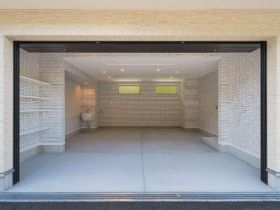 2LDKで100㎡越え、ガレージには電動シャッターと倉庫有り、キッチンにはパントリー付き