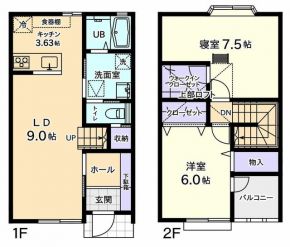 上の階には6帖の洋室と、広めの7.5帖の洋室があります♪