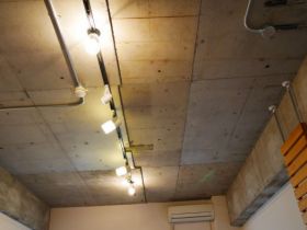 天井はぶち抜いてコンクリむき出しの掃出し電気配線が