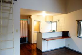 階段みたいな ハシゴ。 キッチンはコンロ持ち込みのタイプ♪ 持込みではあるものの、二口コンロだと 料理がはかどるってもんです。 自炊をすれば節約にもつながります! 私の個人的な意見ですが、 ロフトは有った方がいいです! ロフトで寝るのはきつい、エアコン効かな...
