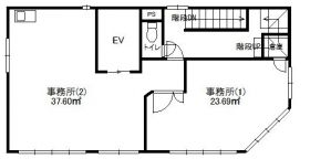 2階ワンフロアのこちらの物件、事務所だけでなく、